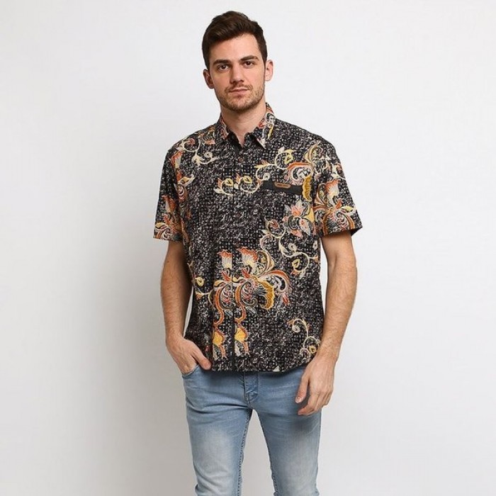 Wihrasto batik shirt lengan pendek muscle fit, yang nyaman dan trendy untuk ke kantor brader,,,